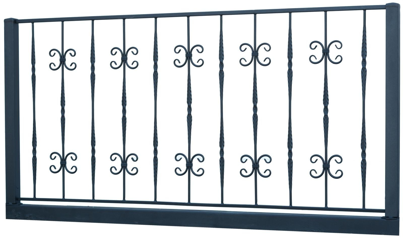Опис Висота: 980 мм, Ширина: під замовлення. Огородження можуть виготовлятися в двох варіантах: - під зварювання до стовпів. - під болти (отвори в стовпах свердляться вже при установці). Грунт світло-сірий або фарба (антикорозійна) чорна. *Стовпи у вартість не входять і замовляються окремо! Доставка по Україні Безкоштовно! *доставка здійснюється через компанію-перевізника "Делівері-Авто".